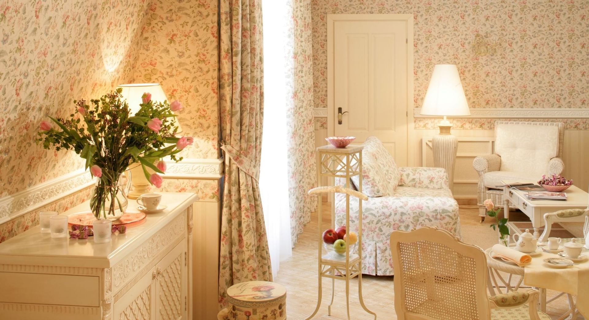Impress yourself with the breezy romance of Provence in this spacious 48-square-meter suite. Floor to ceiling windows illuminates a spacious, airy living area designed in light cream colours floored in natural beech-colored wood to complete the country manor-inspired décor. Wonderful terrace with lounge area gives a unique chance to enjoy a glass of your favourite spirit and relax.